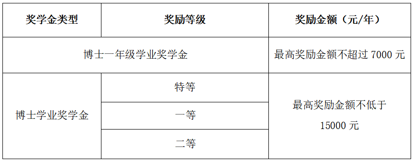 博士研究生学业奖学金等级与金额设定标准