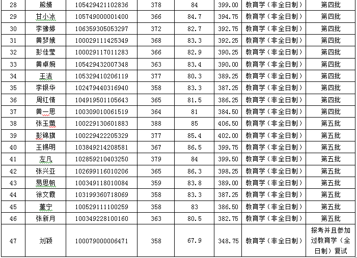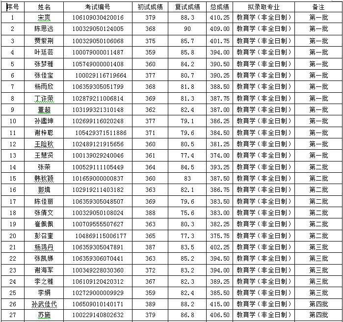 人文与社会科学学院2019年教育学(非全日制)硕士研究生调剂拟录取名单