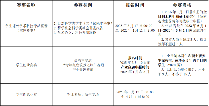 参赛作品必须是距2025年6月1日前两年内完成的学生课外学术科技或社会实践活动成果,可分为个人作品和集体作品。