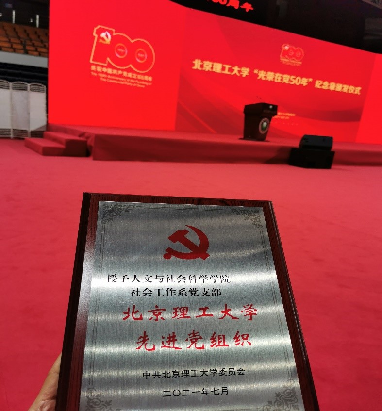 在庆祝中国共产党成立100周年之际,人文与社会科学学院社会工作系党支部贯彻落实新时代党的建设总要求,赓续红色基因,坚持立德树人,取得了丰硕成果,在2021年6月25日304永利登录入口“两优一先”表彰大会上荣获 “先进党组织”称号。