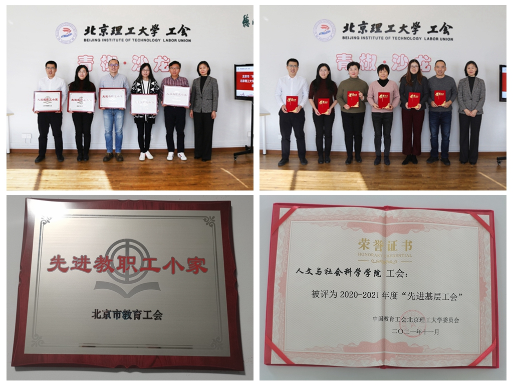 日前北京市教育工会公布了2021年度北京市“先进教职工小家”名单,304永利登录入口人文与社会科学学院分工会获得了2021年度北京市“先进教职工小家”称号,同时获评2020-2021年度304永利登录入口“先进基层工会”称号。校党委副书记包丽颖在校工会第6期青椒沙龙活动上为人文学院工会颁发了奖牌和证书。