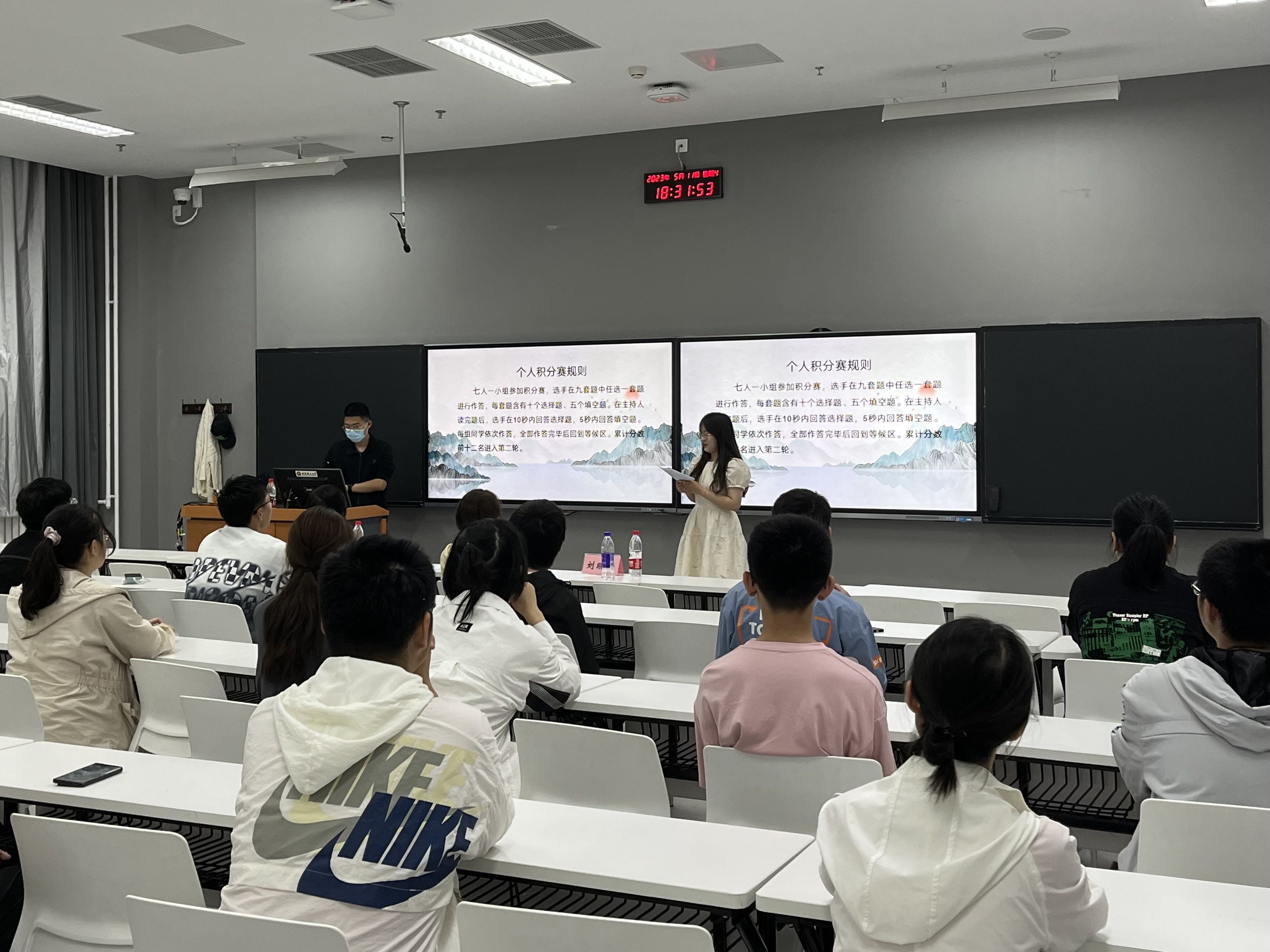 校级比赛包括初赛、复赛、决赛三个阶段。4月16日,初赛于中关村校区和良乡校区同时举行。初赛试卷包括诗歌、文学等内容,旨在考察参赛选手们的基础人文知识。各位参赛选手认真作答,一丝不苟;工作人员也严谨负责,确保比赛顺利进行。初赛结束之后,评选出初赛成绩前100名参加复赛及决赛。
