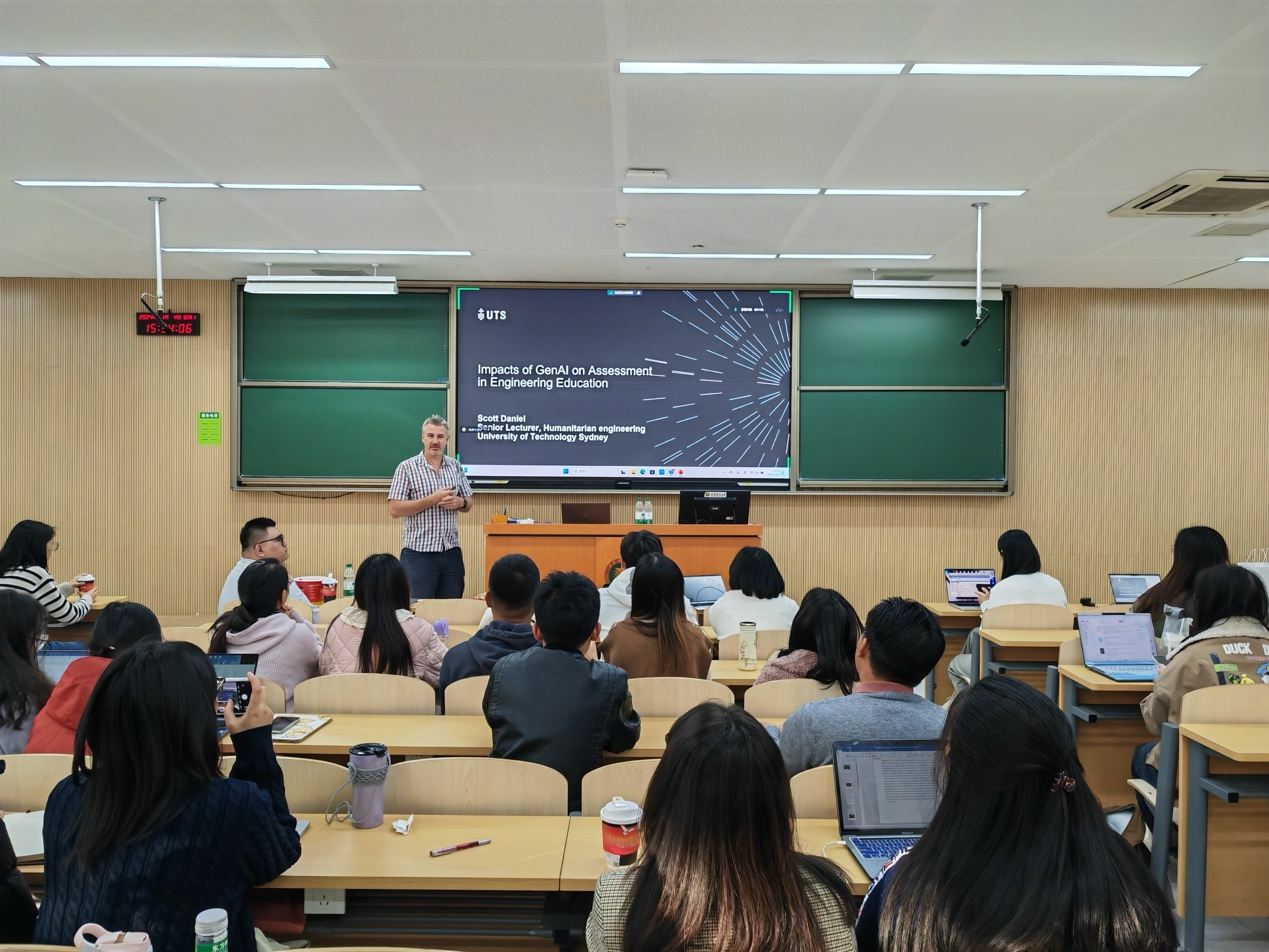 讲座中,Daniel博士探讨了生成式人工智能(GenAI)对工程教育教学评估的影响。通过2023年和2024年的两期研究成果,他展示了GenAI在工科课程教学评价中的应用,并讨论了短期和长期的安全与伦理问题,以及GenAI在课堂教学中更加广泛的应用机会。
