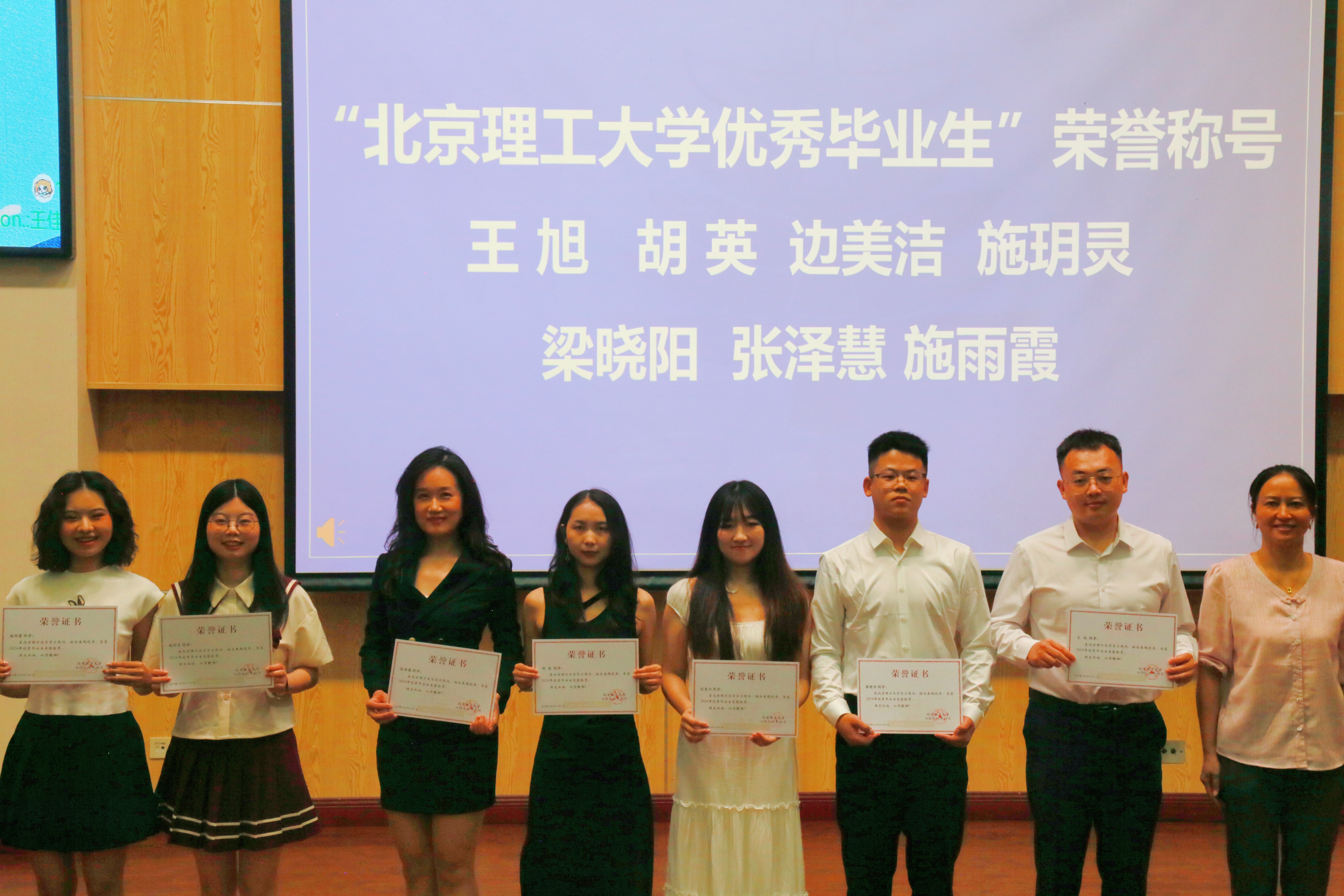 孙硕宣读304永利登录入口优秀毕业生表彰决定,许欣与其一同为优秀毕业生代表办法荣誉证书并合影留念。