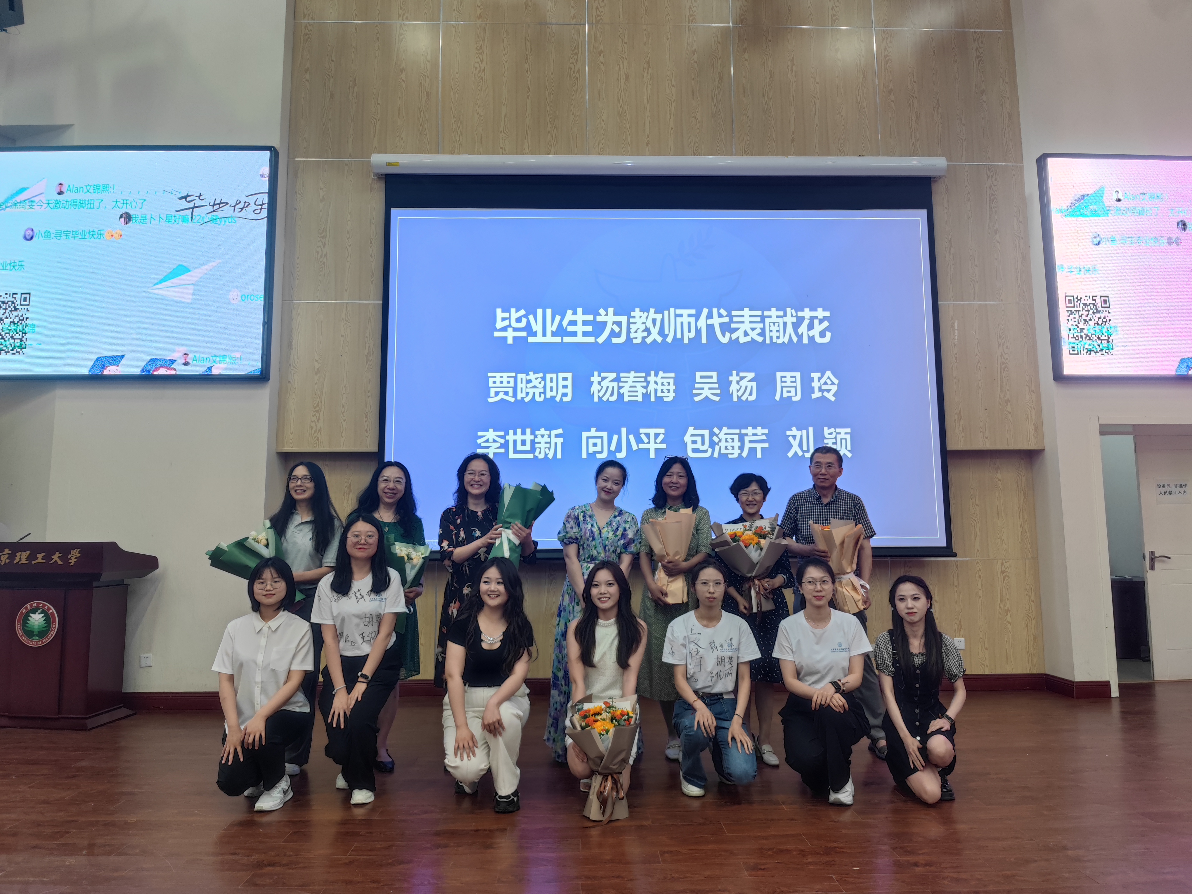 “这深深师恩难以言表,我们永远铭记”毕业生代表为教师代表献花并做出承诺:立教育初心,担起时代责任,勇立潮头;育国之栋梁,以青春之力,书写祖国新篇章。