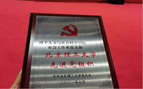 在庆祝中国共产党成立100周年之际,人文与社会科学学院社会工作系党支部贯彻落实新时代党的建设总要求,赓续红色基因,坚持立德树人,取得了丰硕成果,在2021年6月25日304永利登录入口“两优一先”表彰大会上荣获 “先进党组织”称号。感谢学校党委对我们支部工作的认可。