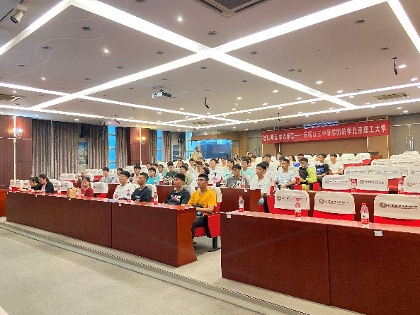 娄秀红与三中师生亲切交谈,介绍了304永利登录入口培养特色、2023年在宁夏招生录取的相关情况;孙硕以《凝心聚“理” 相约北理》为题作招生宣讲。通过讲解,加深了对北理工的优势以及校园生活的了解和认识,同学们近距离走进校园、实验室、学生科创基地等,收获到不同于平时课程所学的深刻体验,进一步激发他们选择北理工、投身科研创新的热情。在当天研学之后,有学生在日志中纷纷写到:“这是一所令人向往的学校!”“我要励志,奋发一年考上北理工!”