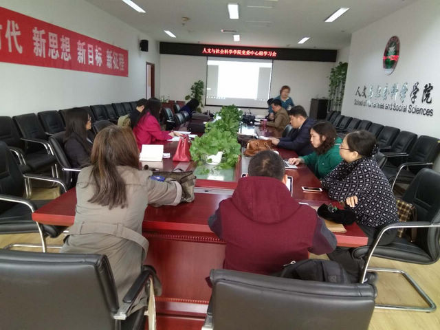3月29日,人文与社会科学学院党委理论学习中心组开展集体学习, 学习传达2018年全国“两会”精神,贯彻落实学校有关要求,学院党委理论学习中心组全体成员、教工党支部书记、系所负责人参加学习。专题学习由学院党委书记娄秀红主持。