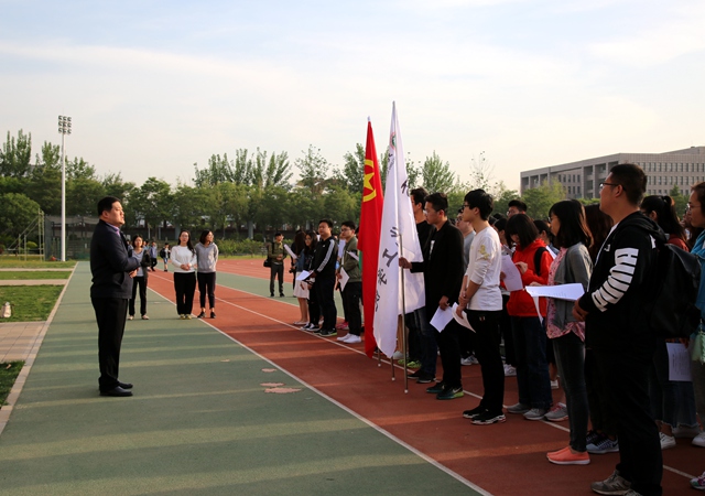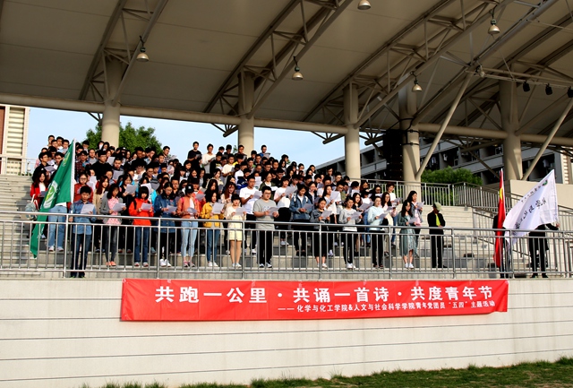 上午6时许,人文与社会科学学院携手化学与化工学院,共同开展“共跑一公里·共诵一首诗·共度青年节——五四主题教育活动”。人文学院党委副书记、副院长李冰向同学们重申五四运动的重要意义和五四精神的重要内涵,并结合习近平总书记5月2日同北京大学师生座谈中所发表的重要讲话,向同学们发出了传承五四精神、担当历史使命、奋斗民族复兴的殷切期望。