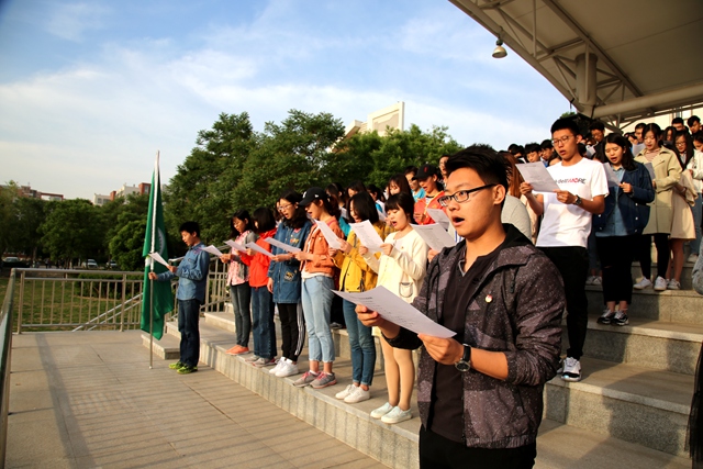 升旗仪式结束后,人文学院参与活动的全体团员在团委副书记潘京润的带领下重温了入团誓词,全体党员在颜笑带领下重温了入党誓词。铿锵有力的誓词,道出了同学们建功新时代的信心和决心。