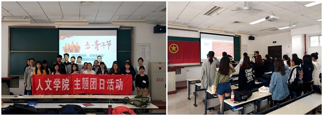 人文学院各党支部、团支部也就五四青年节、马克思诞辰200周年开展各项纪念活动:22111602团支部组织全体团员开展“扬五四精神,颂青春才智”主题团日活动,通过观看五四运动纪录片、共唱团歌、重温入团誓词等活动,学习、发扬五四精神,担复兴大任,做时代新人;学院组织全体党员重读《共产党宣言》,并结合新时代中国特色社会主义思想谈认识、谈理解、谈体悟。
