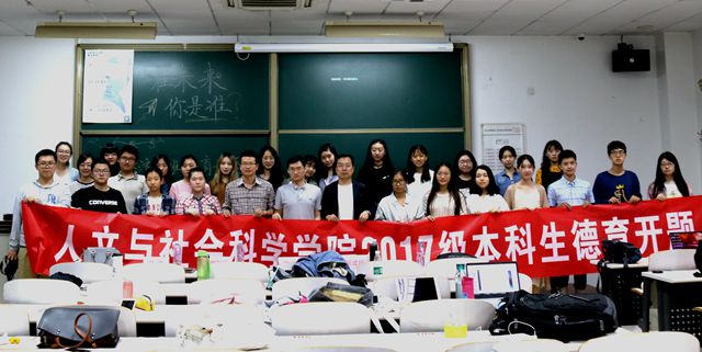 2018年5月21日18:30,人文学院22111701班德育开题交流会于良乡校区2-B501教室顺利开展,校党委组织部副部长陈珂、人文学院副院长贾利军、班主任吴建民、辅导员梁雯与22111701班全体同学一同参与了本次开题交流会。