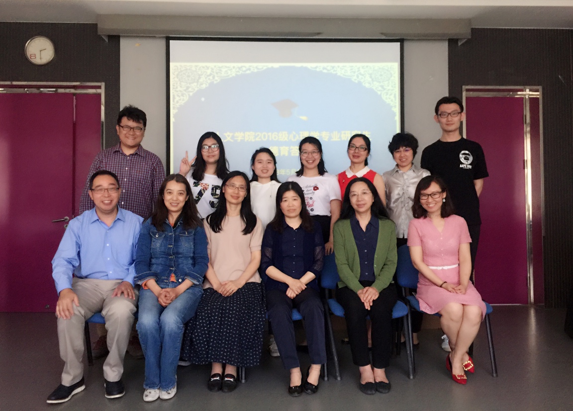 2018年5月23日下午,人文学院2016级心理学硕士研究生德育答辩会在良乡校区心理与社会工作实验室成功举办。人文学院党委书记娄秀红、心理学系责任教授贾晓明、心理学与社会工作专业安芹、丁亚平、王丹、刘颖、向小平、郑佳然等老师出席了本次答辩会。