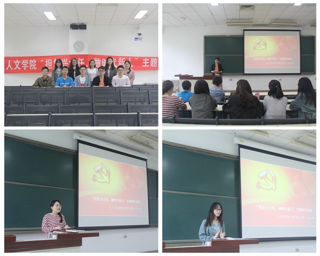 为深入学习习近平新时代中国特色社会主义思想,贯彻落实“两学一做”主题教育。积极响应学校、学院开展“担复兴大任,做时代新人”主题教育活动的号召,进一步强化支部党员理论学习深度,人文学院2017级硕士生第一党支部于5月20日下午在理科教学楼101教室开展“习近平总书记5月2日在北京大学的讲话”专题理论学习,支部党员、预备党员和入党积极分子踊跃参加。