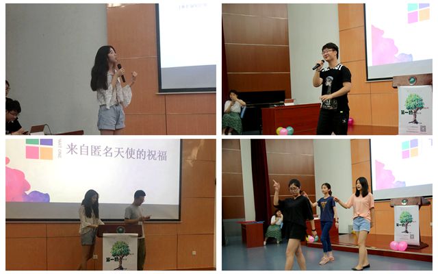 随后,同学们依次进行自己关于成长主题的汇报。同学们在交流过程中表达了自己对成长与价值塑造的认识,对大学生涯的规划,台下同学们仔细聆听,深入思考。每位同学在发言过后获得班级定制的专属精美书签。班会精心策划的“匿名天使的祝福”环节,李耀正同学《普通disco》的精彩演唱,胡天芳、刘钧瑜、吴欣怡同学带来的优美舞蹈,将班会推向一个个高潮。
