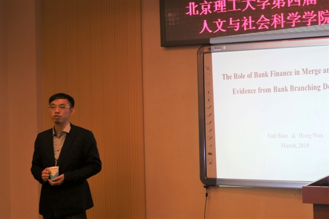 接下来,卞宇立博士就银行金融并购的相关研究作了题为“The Role of Bank Finance in Merge and Acquisition: Evidence from Banking Branching deregulation”的报告,报告深入讨论了银行在并购等金融活动中发挥的重要作用。