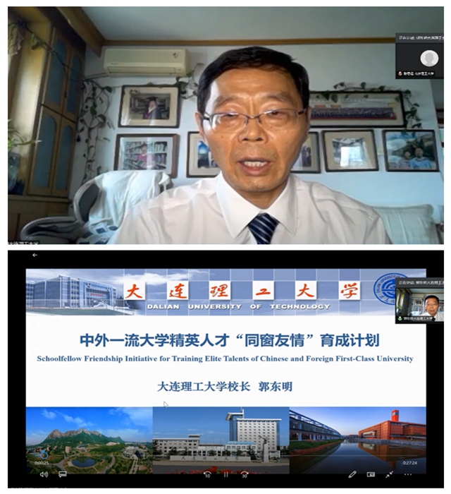 大连理工大学校长、中国工程院院士郭东明以《中外一流大学精英人才“同窗友情”育成计划》为题作大会报告。报告围绕“当今世界的发展,对世界一流大学人才培养的需求是什么?”“面向世界的未来,一流大学要如何回应这些需求 ?”“如何共同实现世界一流大学的理想与使命?”三个问题,阐述中外一流 大学精英人才“同窗友情”育成计划路线图,倡议中外一流大学积极营造同窗友情氛围和创造条件,促进双方学生进行深入交流,比如通过同教室上课、同食堂用餐、同校园生活增进国际学生的文化认同,培养未来熟悉两国文化的各界精英人才,进而成为推动双方共同发展,持续友好的生力军。同时,分享了大连理工大学在推进实施“同窗友情”育成计划的实践成果。