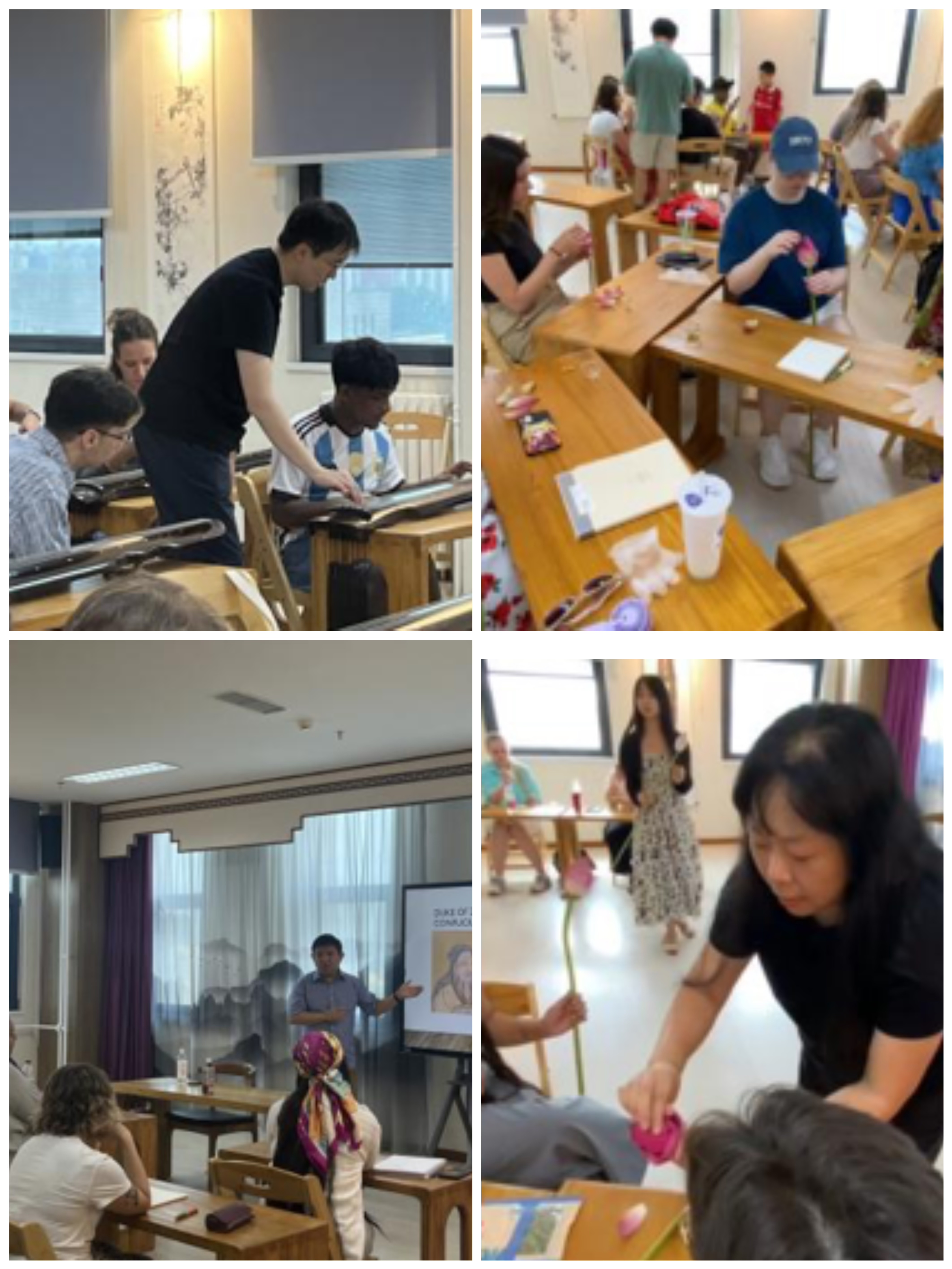 学院精心设计了琴道、花道、香道、茶道、中华雅集体验、中国礼仪文化、汉字的故事、中国古代哲学思想概述、中国科幻文学等一系列课程,由曲楠、侯倩、贾金莉、王颖、刘毅等老师讲授,通过知识传授、互动体验、实践操作等多种形式,让留学生们不仅在课堂上学习到了理论知识,更在亲身参与中深刻体会中华文化的独特韵味。
